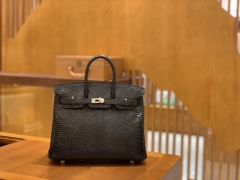 Hermès(爱马仕)Birkin 铂金包 经典黑 蜥蜴皮 银扣 25cm