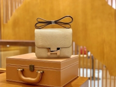 Hermès(爱马仕)Constance 18cm 杏色 银扣 南非野生蜥蜴皮 全手工缝制
