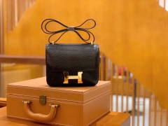 Hermès(爱马仕)Constance 18cm 经典黑 金扣 南非野生蜥蜴皮 全手工缝制