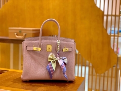 Hermès(爱马仕)Birkin 25cn 玉兰粉拼海鸥灰 掌纹牛皮 高定版本 鳄鱼皮工序