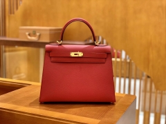 Hermès(爱马仕)Kelly 28cm 中国红 金扣 Epsom掌纹牛皮 全手工缝制 臻品级别