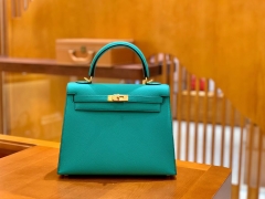 Hermès(爱马仕)Kelly 28cm 维罗纳绿 金扣 Epsom掌纹牛皮 全手工缝制 臻品级别