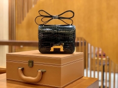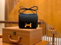 Hermès(爱马仕)Constance 18cm 经典黑 金扣 美洲雾面鳄鱼皮 全手工缝制