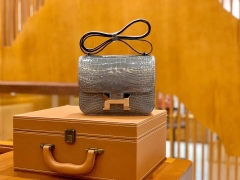 Hermès(爱马仕)Constance 18cm 巴黎灰 银扣 美洲亮面 鳄鱼皮 全手工缝制
