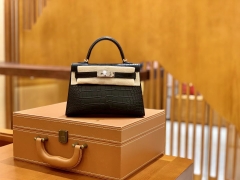 Hermès(爱马仕)Mini Kelly 19cm 经典黑 银扣 一级 美洲 鳄鱼皮 臻品级别