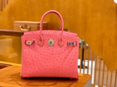 Hermès(爱马仕)Birkin 铂金包 唇膏粉 鸵鸟皮 手缝工艺 银扣 30cm 现货