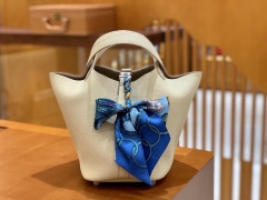 Hermès(爱马仕)Piction 18cm 奶昔白 银扣 鳄鱼皮拼牛皮 全手工缝制 现货