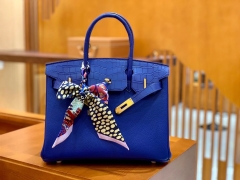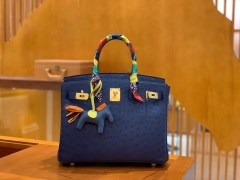 Hermès(爱马仕)Birkin 铂金包 深蓝色 鸵鸟皮 手缝工艺 金扣 30cm 现货