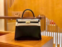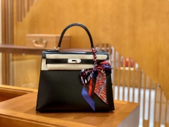 Hermès(爱马仕)Kelly 28cm 经典黑 银扣 BOX猫爪纹牛皮 全手工缝制 臻品工序