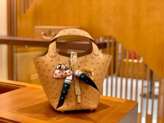 Hermès(爱马仕)Piction 18cm 太妃金 金扣 鸵鸟皮 全手工缝制 现货