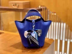 Hermès(爱马仕)Piction 18cm 琉璃蓝 银扣 鳄鱼皮拼牛皮 全手工缝制 现货