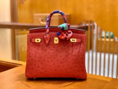 Hermès(爱马仕)Birkin 铂金包 红色 鸵鸟皮 手缝工艺 金扣 25cm 现货