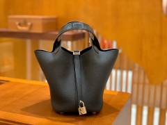 Hermès(爱马仕)Piction 18cm 经典黑 银扣 鳄鱼皮拼牛皮 全手工缝制 现货