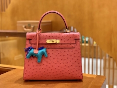 Hermès(爱马仕)Kelly 凯莉包 陶瓷粉 鸵鸟皮 全手工缝制 金扣 28cm 现货