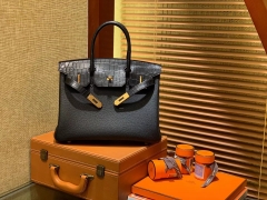 Hermès(爱马仕)Birkin 铂金包 经典黑 鳄鱼皮拼德国togo牛皮 全手工缝制 金扣 30cm