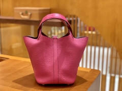 Hermès(爱马仕)Piction 18cm 玉兰粉 银扣 鳄鱼皮拼牛皮 全手工缝制 现货