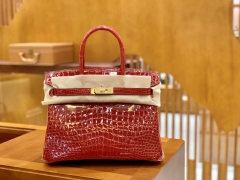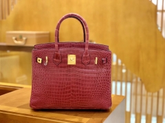 Hermès(爱马仕)Birkin 铂金包 石榴红 倒V 一级皮 湾鳄鱼皮 臻品级别 金扣 30cm