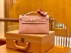 Hermès(爱马仕)Mini Kelly 迷你凯莉 樱花粉 3Q 粉 奶昔粉 一级尼罗鳄鱼皮 全手工缝制 金扣 22cm