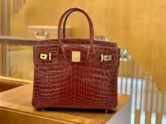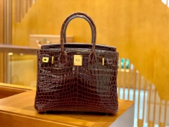 Hermès(爱马仕)Birkin 30cm 深啡色 金扣 一级皮 尼罗鳄鱼皮 臻品级别