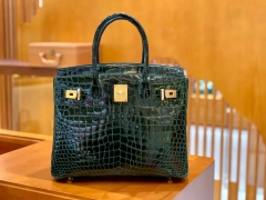 Hermès(爱马仕)Birkin 铂金包 松柏绿 一级皮 尼罗鳄鱼皮 臻品级别 金扣 30cm
