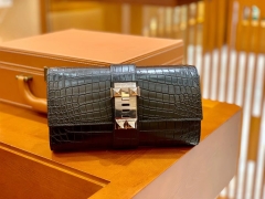 Hermès(爱马仕)CDC 手拿包 23cm 经典黑银 一级尼罗鳄鱼皮 雾面 手缝蜡线