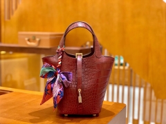Hermès(爱马仕)Piction 菜篮包 石榴红 一级尼罗鳄鱼皮 雾面 手缝蜡线 金扣 18cm