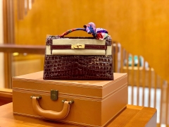 Hermès(爱马仕)Mini Kelly 迷你凯莉 波尔多酒红 一级尼罗鳄鱼皮 全手工缝制 金扣 22cm