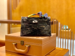 Hermès(爱马仕)Mini Kelly 迷你凯莉 经典黑 一级尼罗鳄鱼皮 全手工缝制 银扣 22cm
