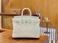 Hermès(爱马仕)Birkin 铂金包 羊毛白 一级皮 尼罗鳄鱼皮 臻品级别 金扣 25cm