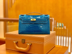 Hermès(爱马仕)Mini Kelly 迷你凯莉 伊兹密尔蓝 一级尼罗鳄鱼皮 全手工缝制 金扣 22cm