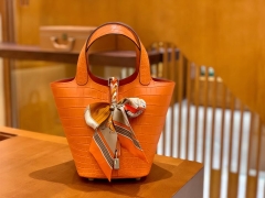 Hermès(爱马仕)Piction 菜篮包 经典橙 一级尼罗鳄鱼皮 雾面 手缝蜡线 银扣 18cm