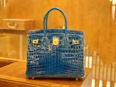 Hermès(爱马仕)Birkin 铂金包 伊滋密尔蓝 一级皮 尼罗鳄鱼皮 臻品级别 金扣 30cm