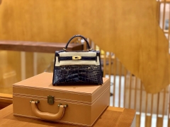 Hermès(爱马仕)Mini Kelly 迷你凯莉 午夜蓝 宝石蓝 一级美洲鳄鱼皮 臻品级别 金扣 19cm
