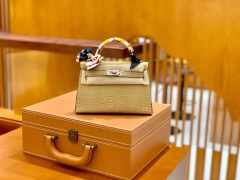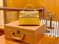Hermès(爱马仕)Mini Kelly 迷你凯莉 琥珀黄 一级美洲鳄鱼皮 臻品级别 金扣 19cm