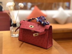 Hermès(爱马仕)Mini Kelly迷你凯莉 石榴红 南非kk级鸵鸟皮 臻品级别 1代 金扣 22cm