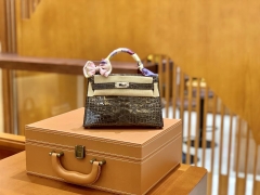 Hermès(爱马仕)Mini Kelly 迷你凯莉 锡器灰 一级美洲鳄鱼皮 臻品级别 银扣 19cm