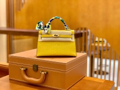 Hermès(爱马仕)Mini Kelly 迷你凯莉 琥珀黄 雾面鳄鱼 一级 顶端级别 美洲 臻品级别 金扣 19cm