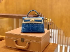 Hermès(爱马仕)Mini Kelly 迷你凯莉 伊滋密尔蓝 一级美洲鳄鱼皮 臻品级别 金扣 19cm