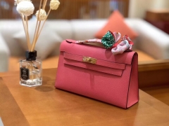 Hermès(爱马仕)Mini Kelly迷你凯莉 唇膏粉 Epsom掌纹皮 臻品级别 1代 金扣 22cm