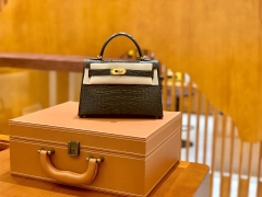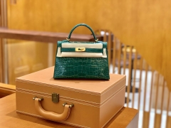 Hermès(爱马仕)Mini Kelly 迷你凯莉 翡翠绿 一级美洲鳄鱼皮 臻品级别 金扣 19cm