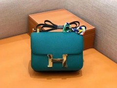 Hermès(爱马仕)Constance 空姐包 孔雀绿 Epsom掌纹小牛皮 臻品级别 金扣 18cm