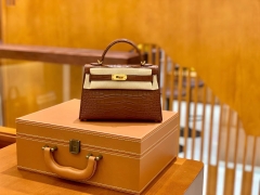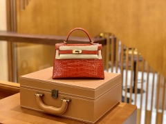 Hermès(爱马仕)Mini Kelly 迷你凯莉 焦糖棕色 雾面鳄鱼 一级 顶端级别 美洲 臻品级别 金扣 19cm