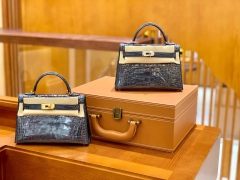 Hermès(爱马仕)Mini Kelly 迷你凯莉 风暴蓝 亮面鳄鱼 一级 顶端级别 美洲 臻品级别 金银扣 19cm