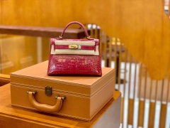 Hermès(爱马仕)Mini Kelly 迷你凯莉 法拉利红 一级美洲鳄鱼皮 臻品级别 金扣 19cm