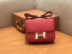 Hermès(爱马仕)Constance 空姐包 红色 Epsom掌纹小牛皮 臻品级别 金扣 18cm