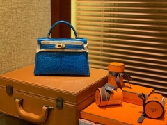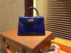 Hermès(爱马仕)Mini Kelly 19cm (迷你2代) 宝蓝色 一级美洲鳄鱼皮 手工缝制 臻品级别