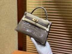 Hermès(爱马仕)Mini Kelly 锡器灰 一级美洲鳄鱼皮 全手工缝制 臻品级别 银扣 19cm 2代