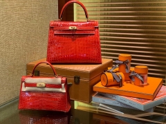 Hermès(爱马仕)Kelly 25cm 法拉利红 尼罗鳄鱼皮 顶级蜡线全手工