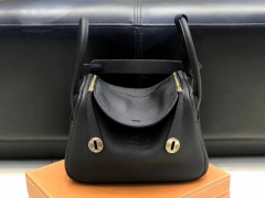 Hermès(爱马仕)Lindy琳迪包 经典黑金 德国进口togo牛皮 蜡线全手工缝制 26cm