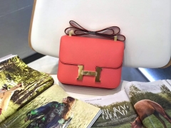 Hermès(爱马仕)Constance 空姐包 西瓜红 掌纹牛皮 金扣 23cm